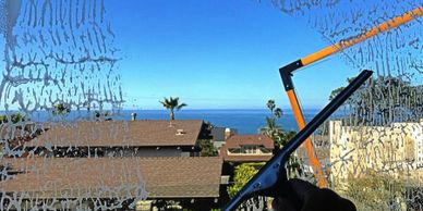 Window Washing with Bio-degradable detergent; Steel whool & professional window scappers used as needed to remove all dirt /debris & then glass is Squeegeed Clean. We serve La Jolla San Diego Del Mar